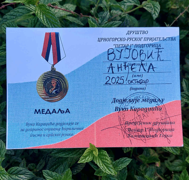 ДРУШТВО ЦРНОГОРСКО-РУСКОГ ПРИЈАТЕЉСТВА „ПЕТАР I“: Одликовање за мр Анђелу Вујовић!