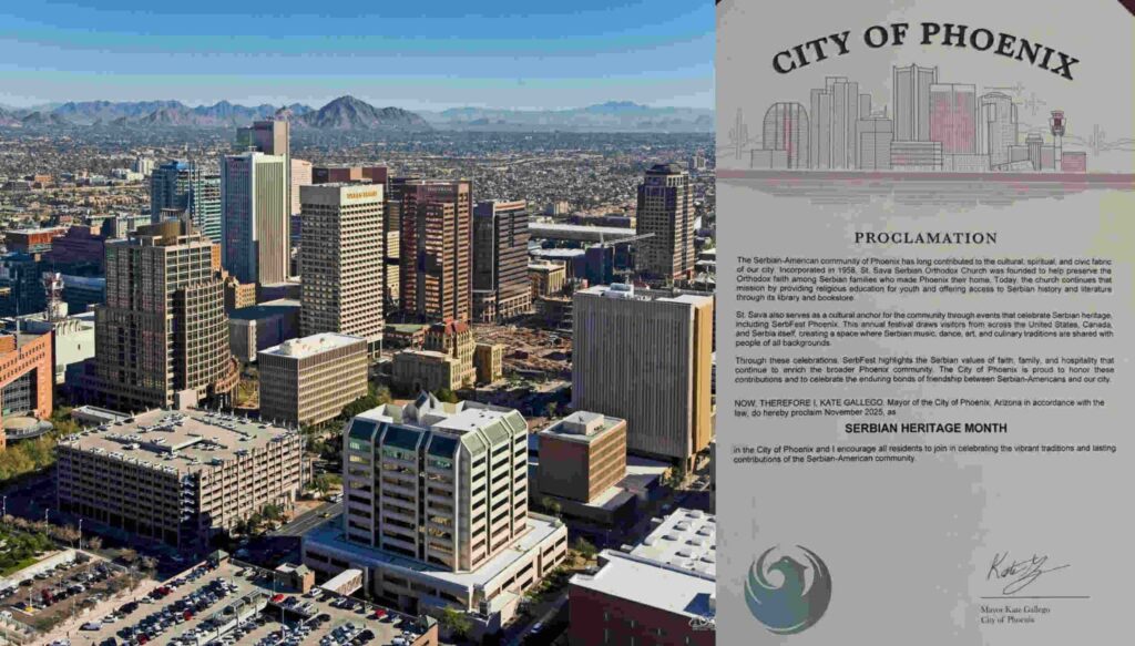 Амерички град Финикс, у држави Аризона, данас је специјалним указом градоначелницеКејт Гаљего, новембар прогласио месецом српског наслеђа.