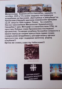 Парастос страдалим’ на Крнову ће се одржати 11 октобра са почетком у 13 h. Организован је превоз аутобусом са поласком у