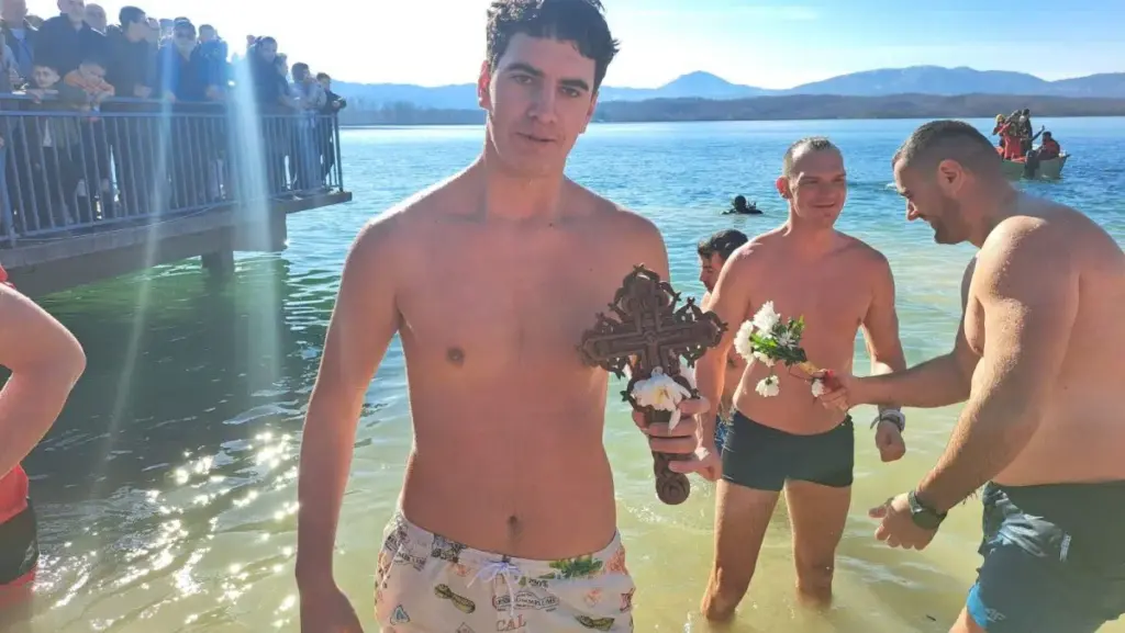 Петнаестогодишњи Лазар Ђоројевић први је данас допливао до Часног крста на језеру Крупац у Никшићу, у којем се надметало више тотина Никшићана. Лазар је ученик првог разреда средње школе и ово му је први пут да на Богојављење учествује у пливању за Часни крст, које је организовала Црквена општина Никшић Епархије будимљанско-никшићке.