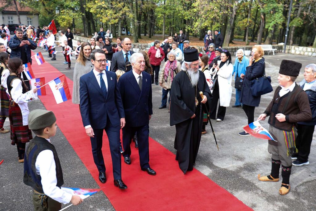 Церемонија је започела свечаним дочеком, током кога су окупљени фолклорни ансамбли извели химну „Боже правде“. Краљевска породица је затим положила венце на гробове ЊВ Краља Петра I Ослободиоца и ЊВ Краља Александра I Ујединитеља, одајући почаст њиховом трајном наслеђу и свим српским јунацима који су се борили и жртвовали за слободу током Првог светског рата.