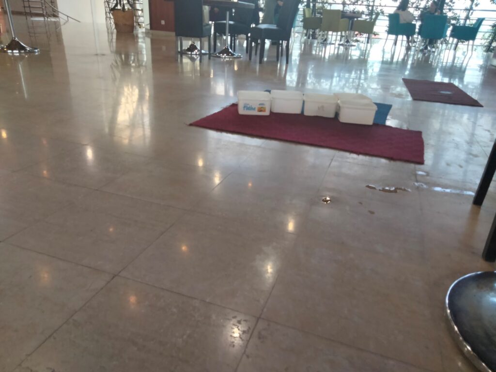 Институт „Симо Милошевић“ је знак распознавања здравственог домаћег туризма, али ових дана прокишњава! На више мјеста у Институту постављене су пластичне кутије од сира, а најалармантије је у просторији поред ресторана. Капље и на петом спрату, али и у приземљу. Иако је киша престала да пада у Херцег Новом прије два дана, у Инсититуту и даље капље!