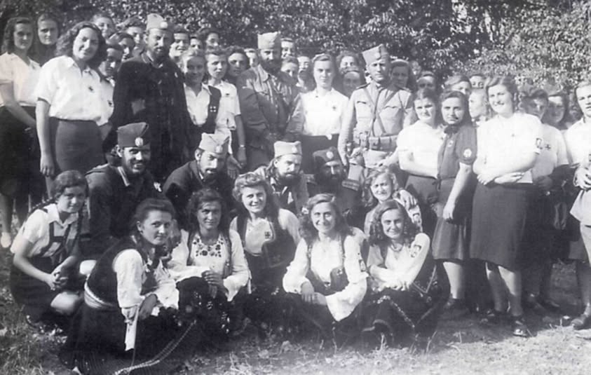 Женска Равногорска омладина Kосмајског корпуса са официрима ове јединице у Kораћици код Младеновца…